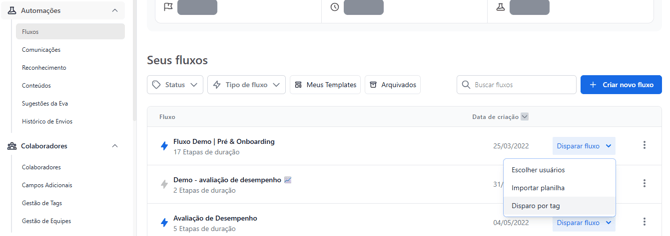 Após atualizar ou criar tags, você também pode utilizá-las para disparar fluxos por tags. Isso permite segmentar ainda mais as comunicações e garantir que cada grupo receba apenas os conteúdos que fazem sentido para ele.